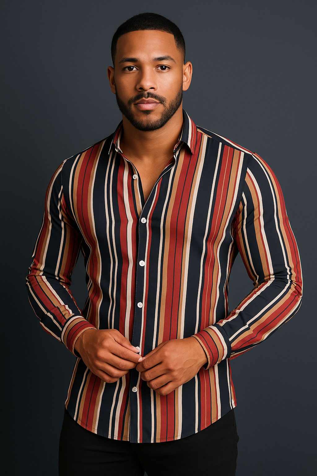 CAMISAS,MANGAS,LARGAS,RAYAS,MARRON